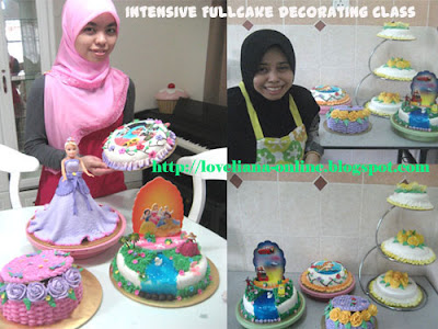 Kelas Intensive Fullcake decorating adalah diantara yang paling disukai oleh student2 saya,dalam kelas ini anda akan belajar banyak hal dalam mendeco pelbagai jenis cake dengan hiasan yang unique,cantik dan tentunya sedaap!! sesuai utk anda yang ingin berniaga dan menang bersaing dengan kedai2 bakery..!! jom buktikan!!!
